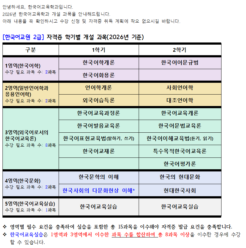 2026Çг⵵ 1Çбâ+2Çбâ Çѱ¹¾î±³À°Çаú °³¼³ ±³°ú¸ñ